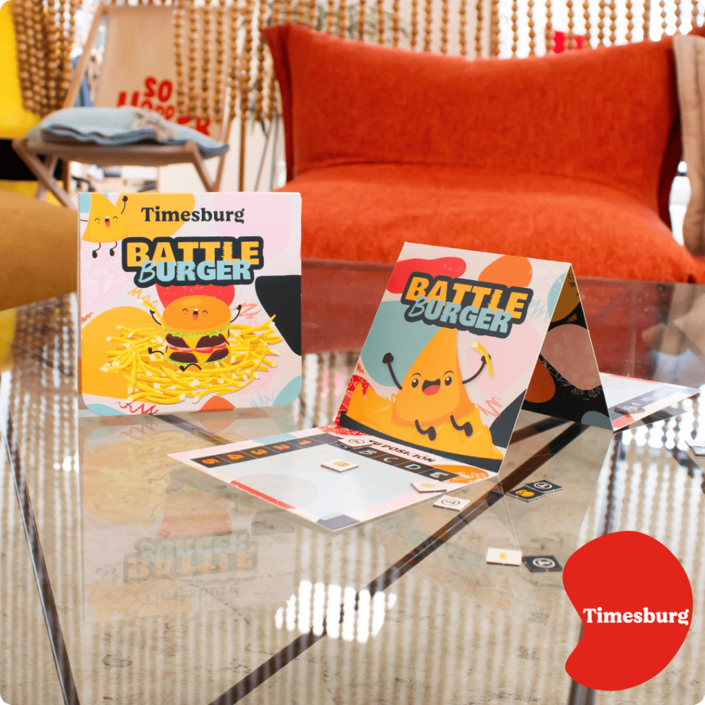 Timesburg es una cadena de hamburgueserías gourmet conocida por su personalidad única y su ambiente moderno. Para ellos creamos varias referencias, entre ellas nuestro famoso Battle Burger y un Coloring Tube exclusivo.