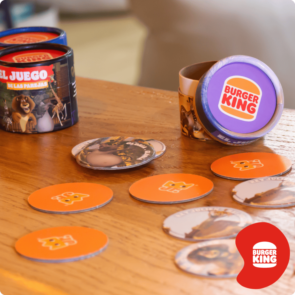 ¡Seguro que la conoce! La famosa cadena de restauración Burger King confía en nosotros para aportar diversión a las familias que visitan sus restaurantes. Nuestra colaboración incluye varios proyectos, entre ellos un Memory Game con licencia de Madagascar, compuesto por seis juegos coleccionables diseñados para una campaña especial.
